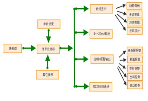燒結礦屬磁性物質,大量的研究資料表明,鐵磁性物質的導磁率 與其中的FeO含量有著密切的關系,燒結礦的導磁率主要取決于物料 中FeO或Fe3O4含量的高低 ,FeO(Fe3O4)含量越高,導磁率越大, 反之則小。導磁率與FeO(Fe3O4) 之間呈線性關系,但線性斜率與燒 結礦的堿度、化學成分及物理性質有關。利用這種已知斜率的線性方 程,就可以將檢測非電量燒結礦FeO含量轉換成燒結礦中鐵磁性物質 的導磁率 ,通過電磁轉換即可實現對燒結礦FeO含量的快速檢測。 進料裝置將燒結機后的6-12mm燒結礦導入氧化亞鐵測量儀進料 口,燒結礦進入料倉緩存,料倉裝有料位開關與料位計,料過檢測 傳感器后經由自動出料裝置導出至出料口并返回到返礦皮帶,自動 出料裝置受料倉料位計控制,當燒結料流過檢測傳感器時由于燒結料 中的FeO(Fe3O4 )含量不同,檢測傳感器內產生與FeO含量成一定比例 的電感變化,變送器將變化的電感量檢出并將其轉達化為對應電流信 號,經放大后的電流信號送入控制器,控制器將該信號處理后, 其一分發顯示單元就地顯示,其二送輸出端口用于遠程調用。